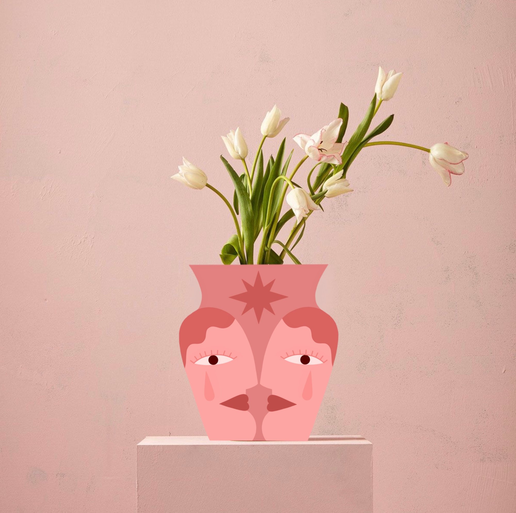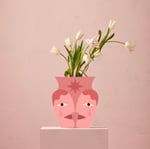 Remplissez le récipient à moitié avec de l'eau et placez-le sur une surface plane. Ouvrez le vase en papier en appuyant doucement sur les bords et faites-le glisser sur le récipient. Le vase est en papier imperméable. Disposez les fleurs et illuminez votre endroit préféré.